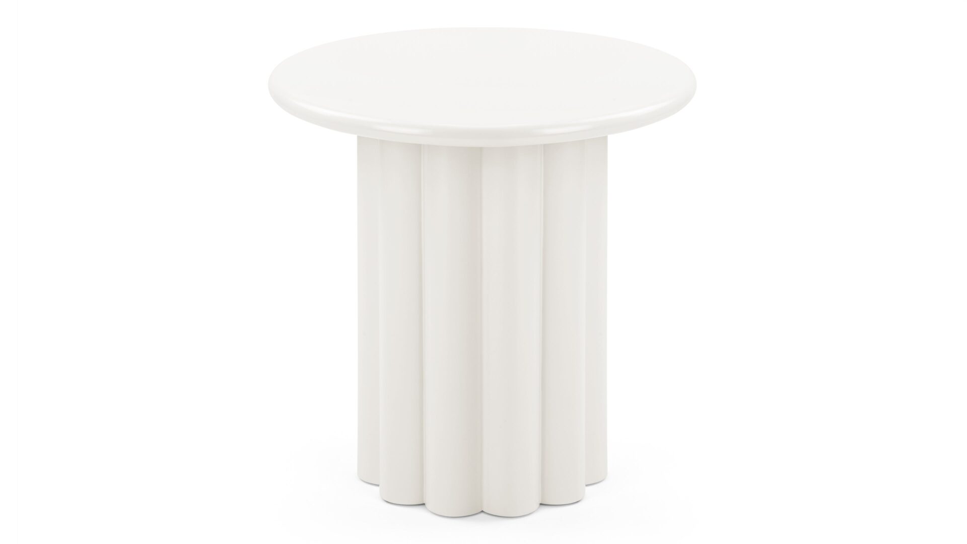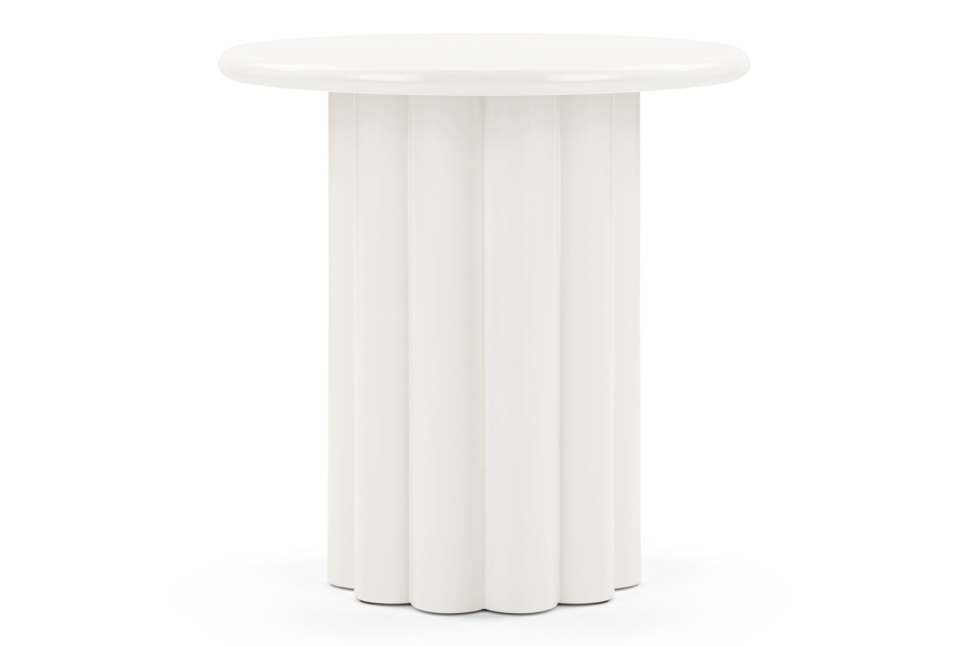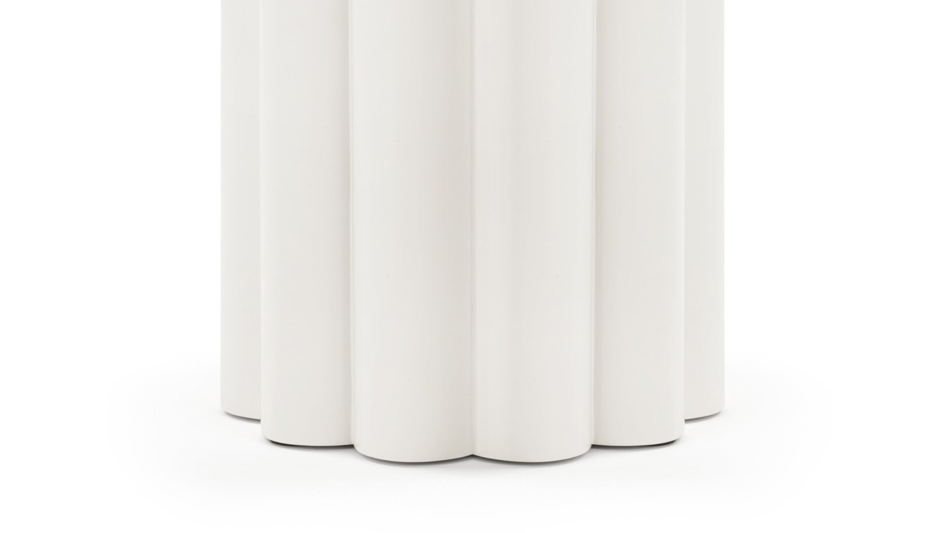 Discover the Vesta Side Table, influenced by Art Deco aesthetics and distinguished by its reeded base. This stylish yet practical piece is a delightful complement to any room. With its rounded top offering ample room for daily essentials, and its eye-catching base and subtle hues seamlessly enhancing your existing decor.