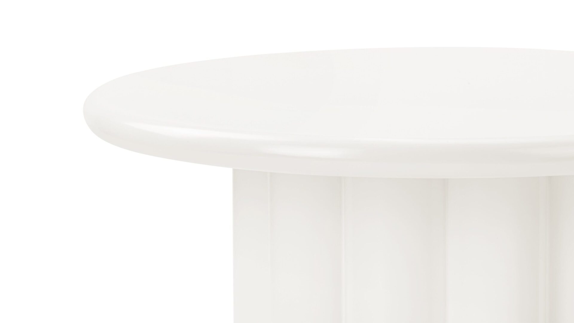 Elevate your living space with the Vesta Side Table, a blend of playfulness and minimalistic design evoking the 1920s Art Deco style. Featuring a unique reeded base in muted tones, this table effortlessly complements any decor. Fully assembled and ready to enhance your space, pair it with the coordinating Vesta Coffee Table for a charmingly whimsical set or create a mature look by contrasting it with angular furniture and accessories. Explore the Circular Table's stylish allure, with rounded edges and a smooth finish adding a soft and organic touch to your decor. The timeless Art Deco design of the table's base stands out, attracting visual attention upwards with its scalloped sides and establishing an airy aesthetic.