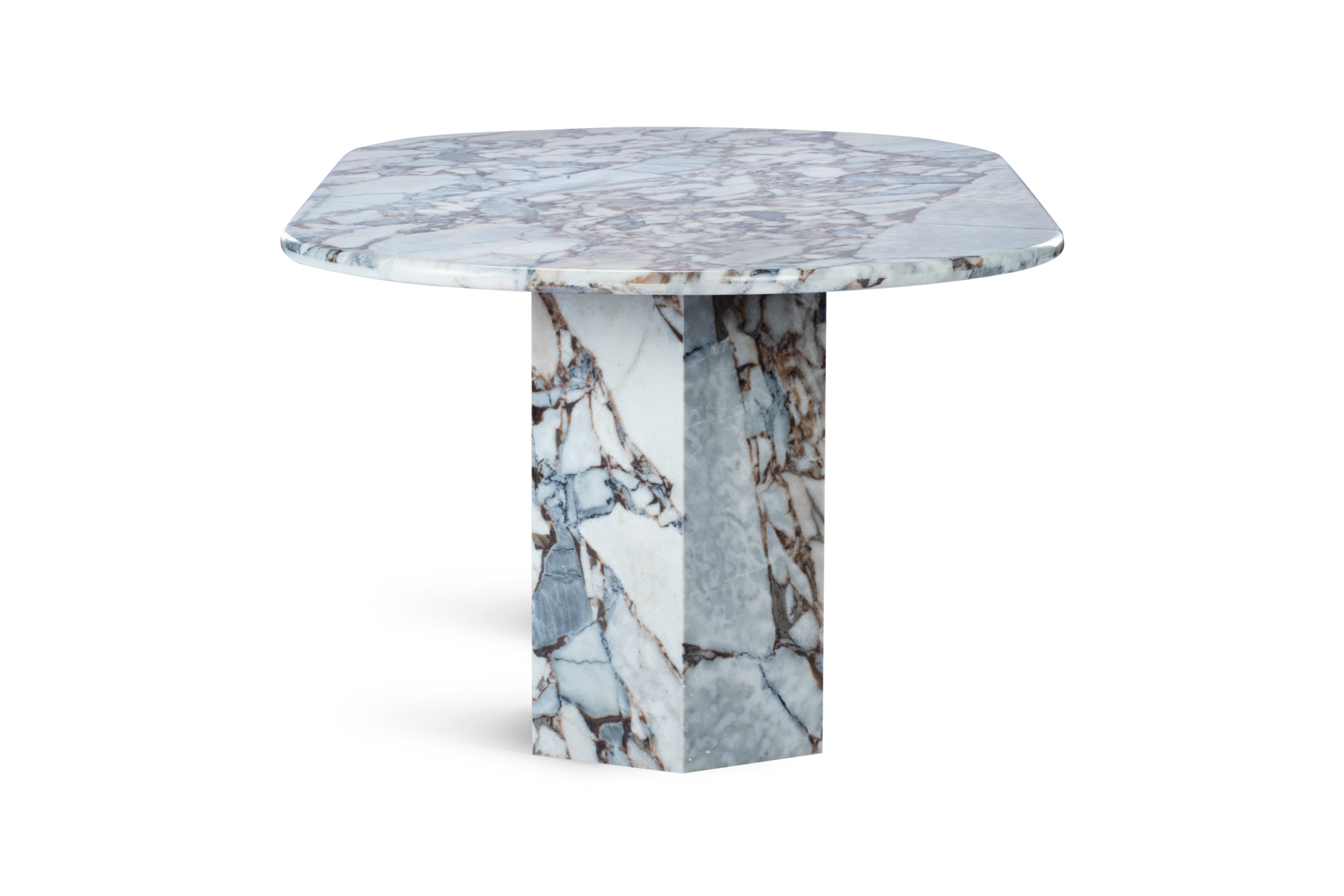 Experience a modern interpretation of the pedestal base table with the Viola dining table. This design showcases hexagonal plinth bases, providing ample space underneath to accommodate additional diners while boasting a sleek, linear silhouette.