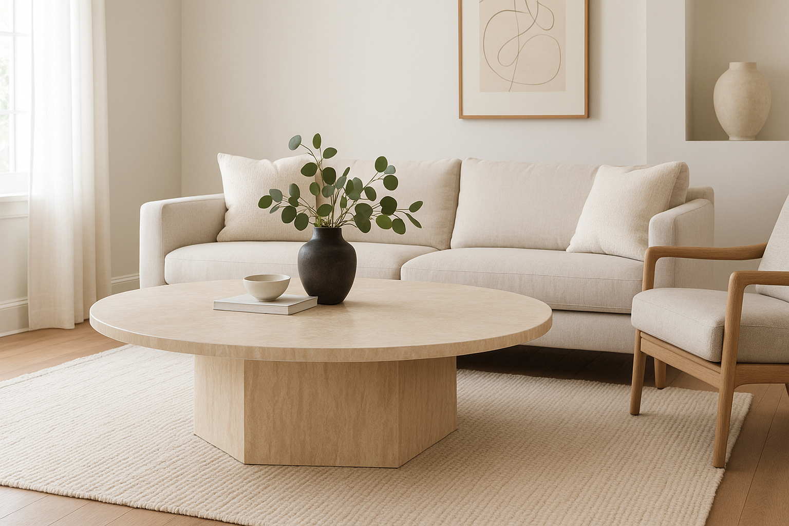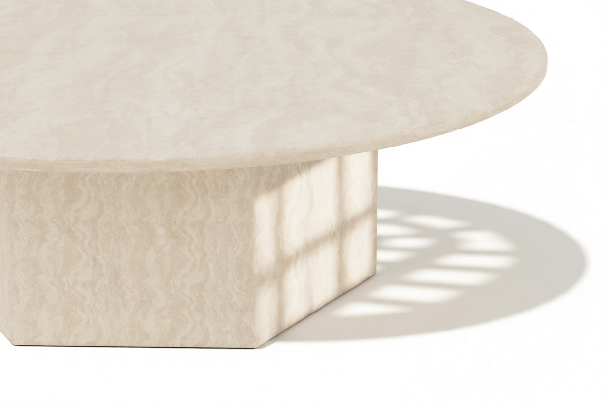 Elegantly combining sculptural artistry and minimalist design, the coffee table is a striking focal point that harmoniously blends contemporary style with practical functionality. With its smooth, sculptural form, it radiates a subtle sophistication, becoming a versatile centerpiece that beautifully enhances both small and large living spaces.