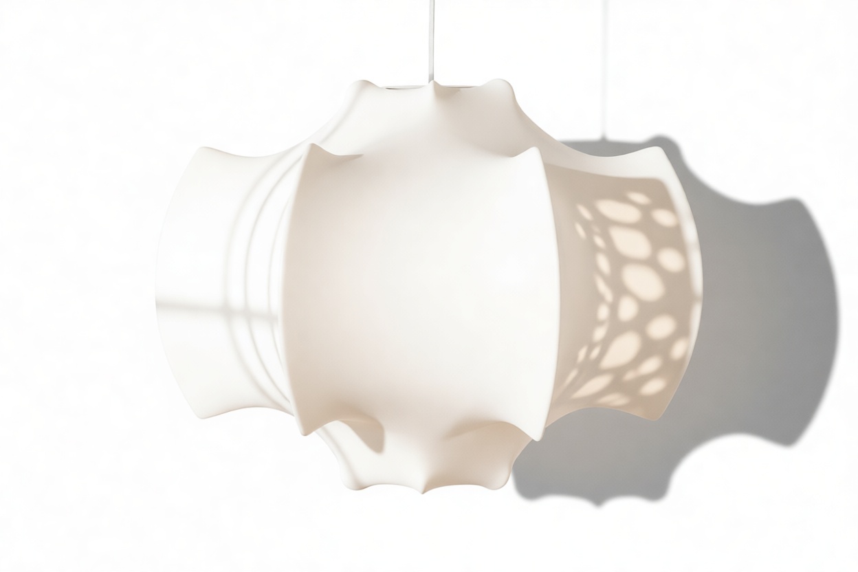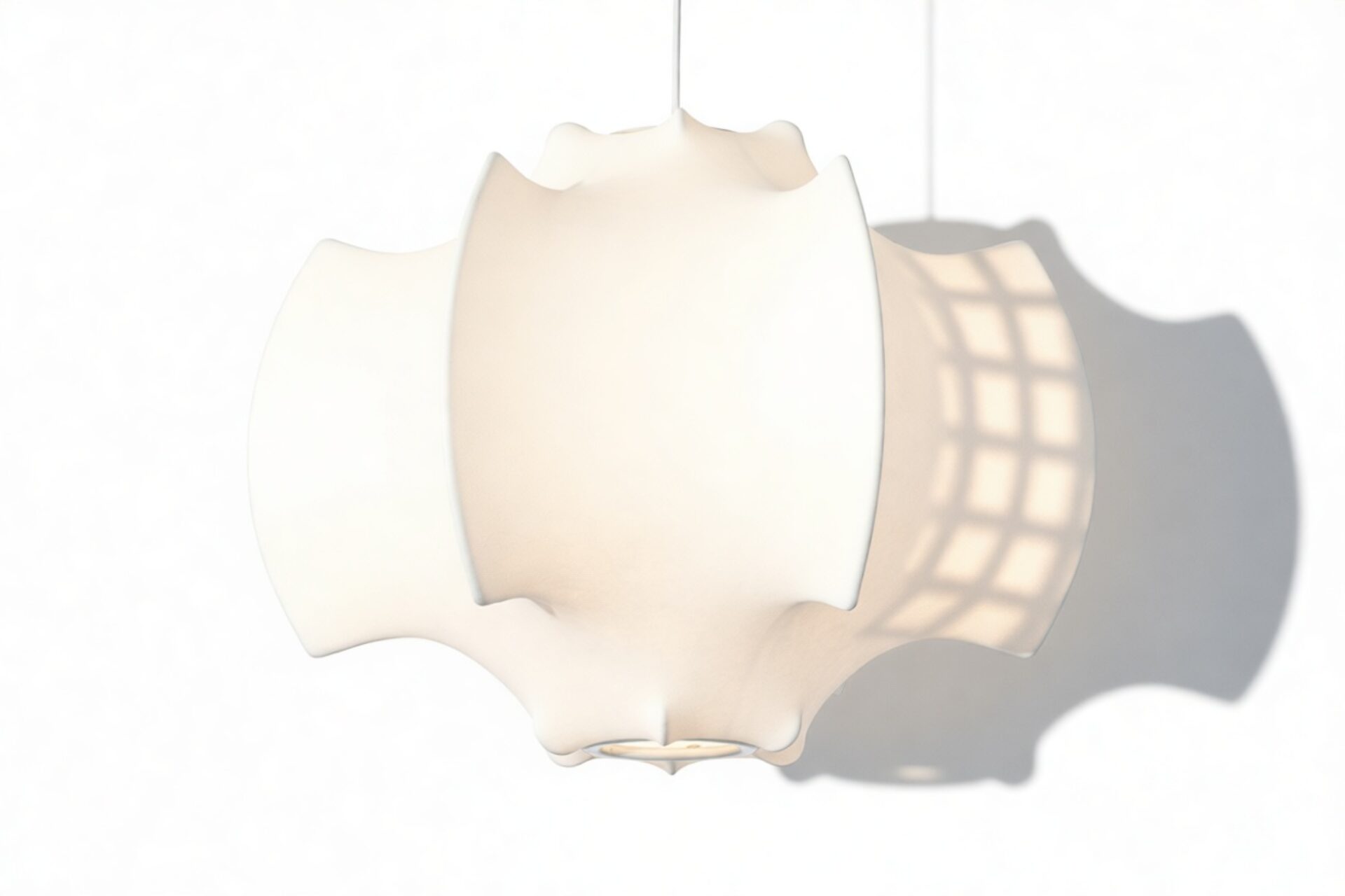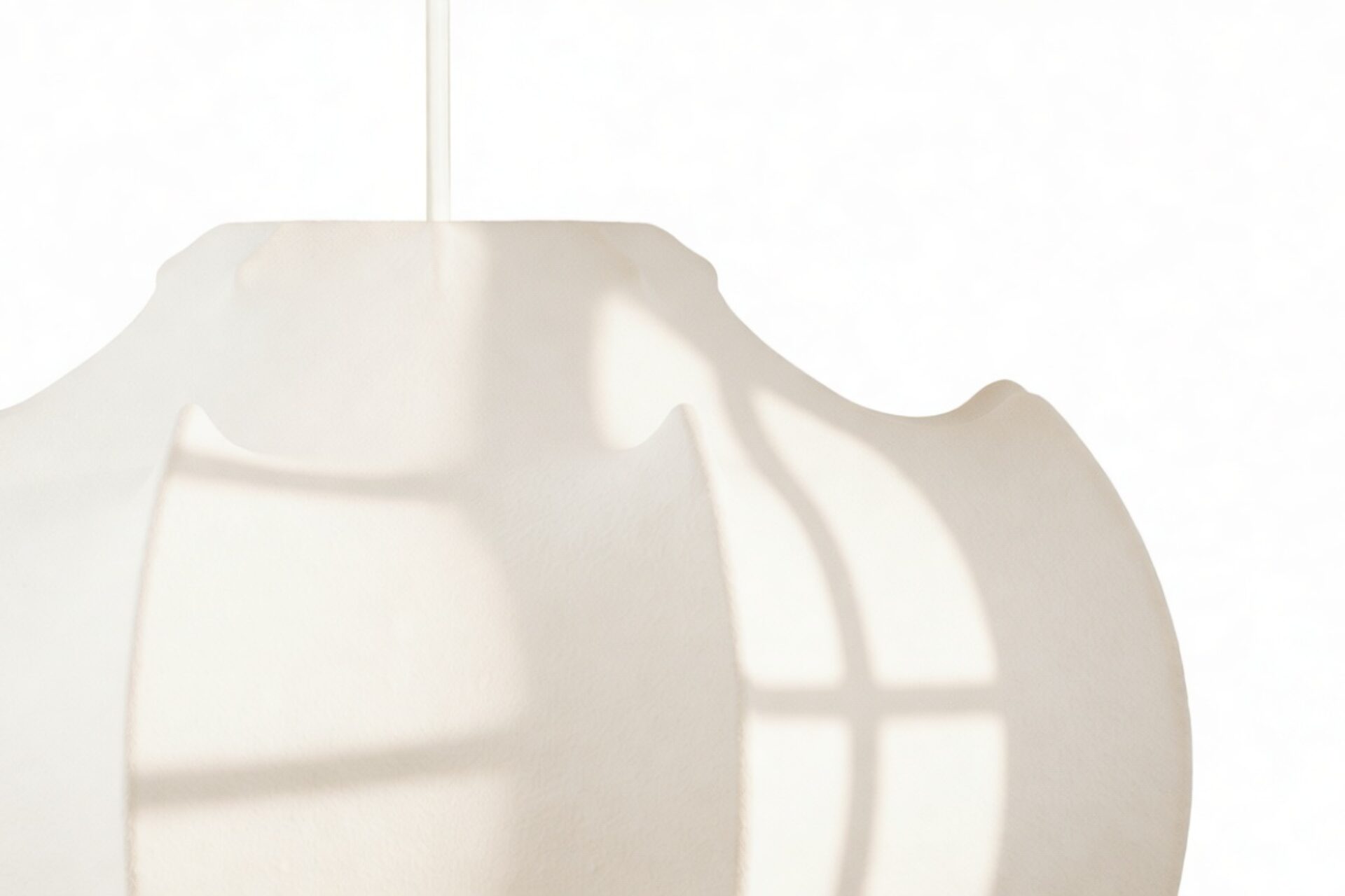 Enhance your space with the Viscontea Ceiling Light, a classic piece in lighting design. This renowned pendant light combines cutting-edge materials with innovative aesthetics, showcasing a dedication to functionality and artistry. At the core of the Viscontea Ceiling Light lies its unique cocoon-inspired shade. Handcrafted from elegant white silk delicately stretched over a steel wire frame, the shade produces a mesmerizing visual impact that evokes the beauty of a natural cocoon. The outcome is a gentle and ambient light that illuminates any room with a cozy and welcoming radiance.