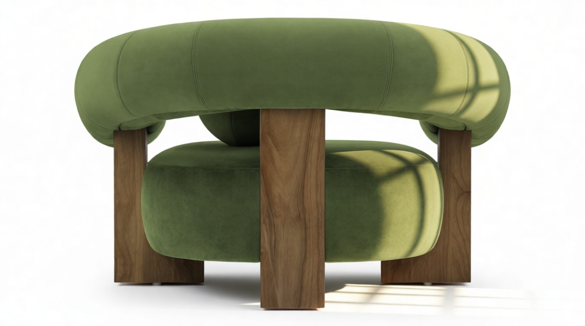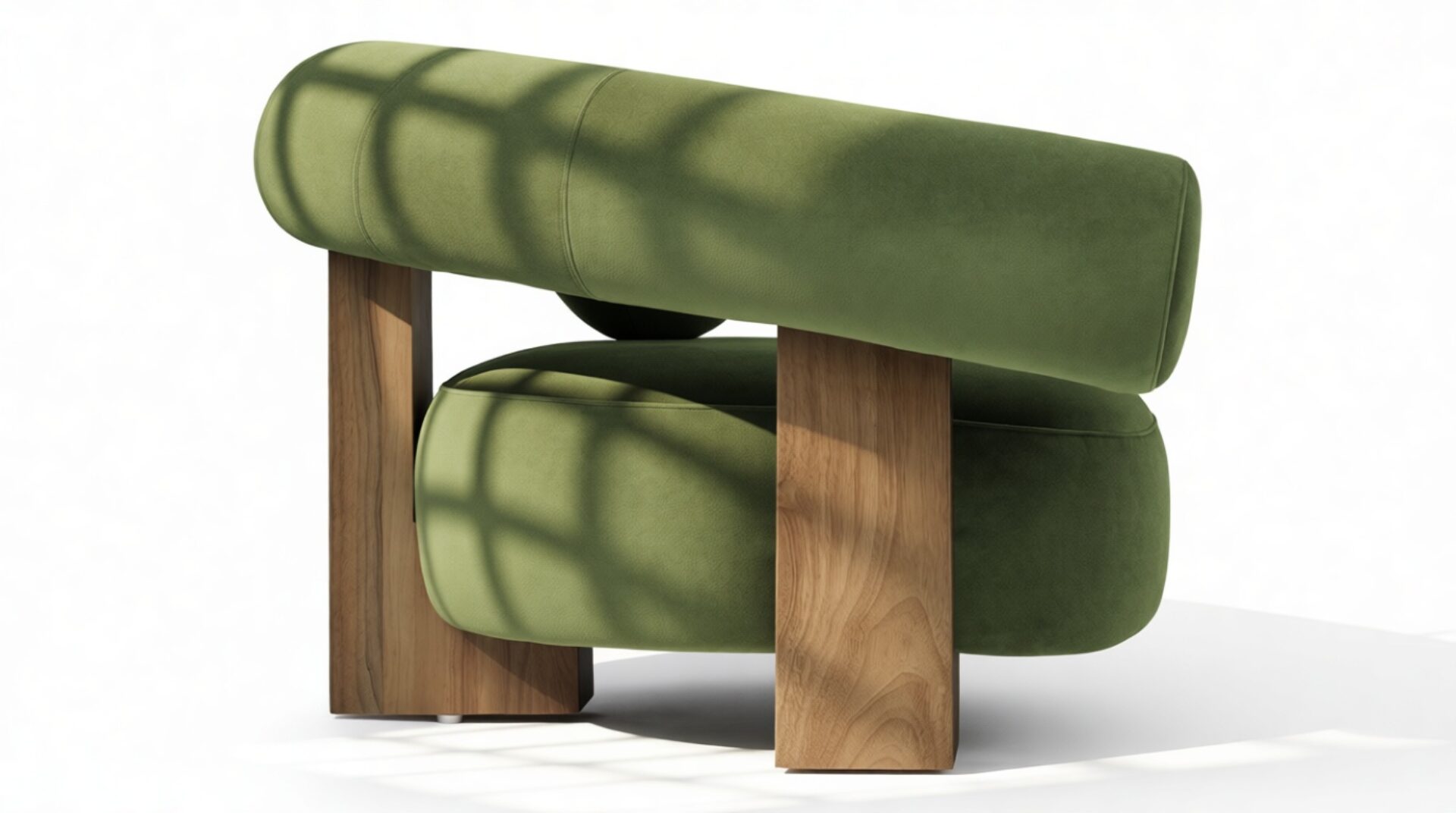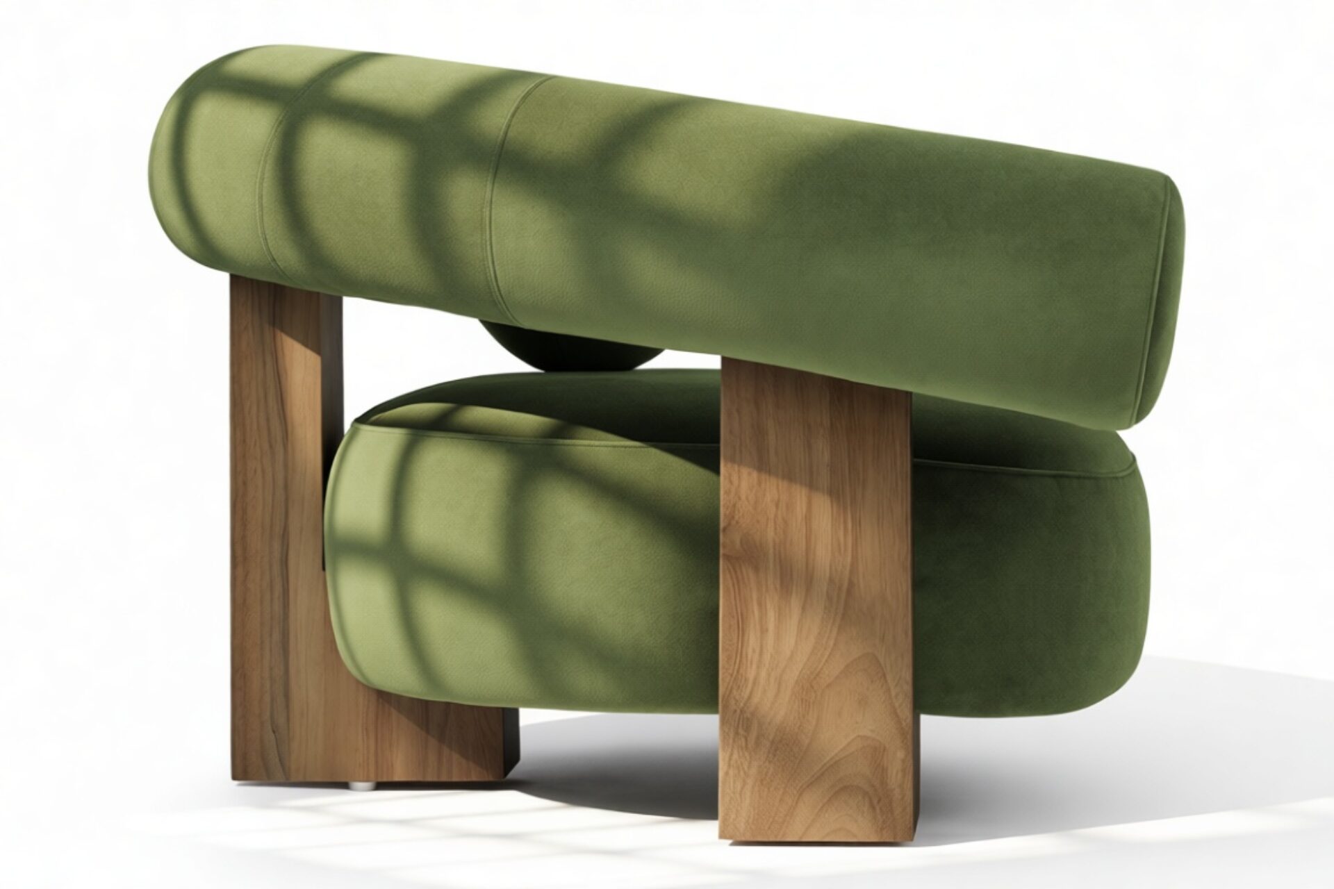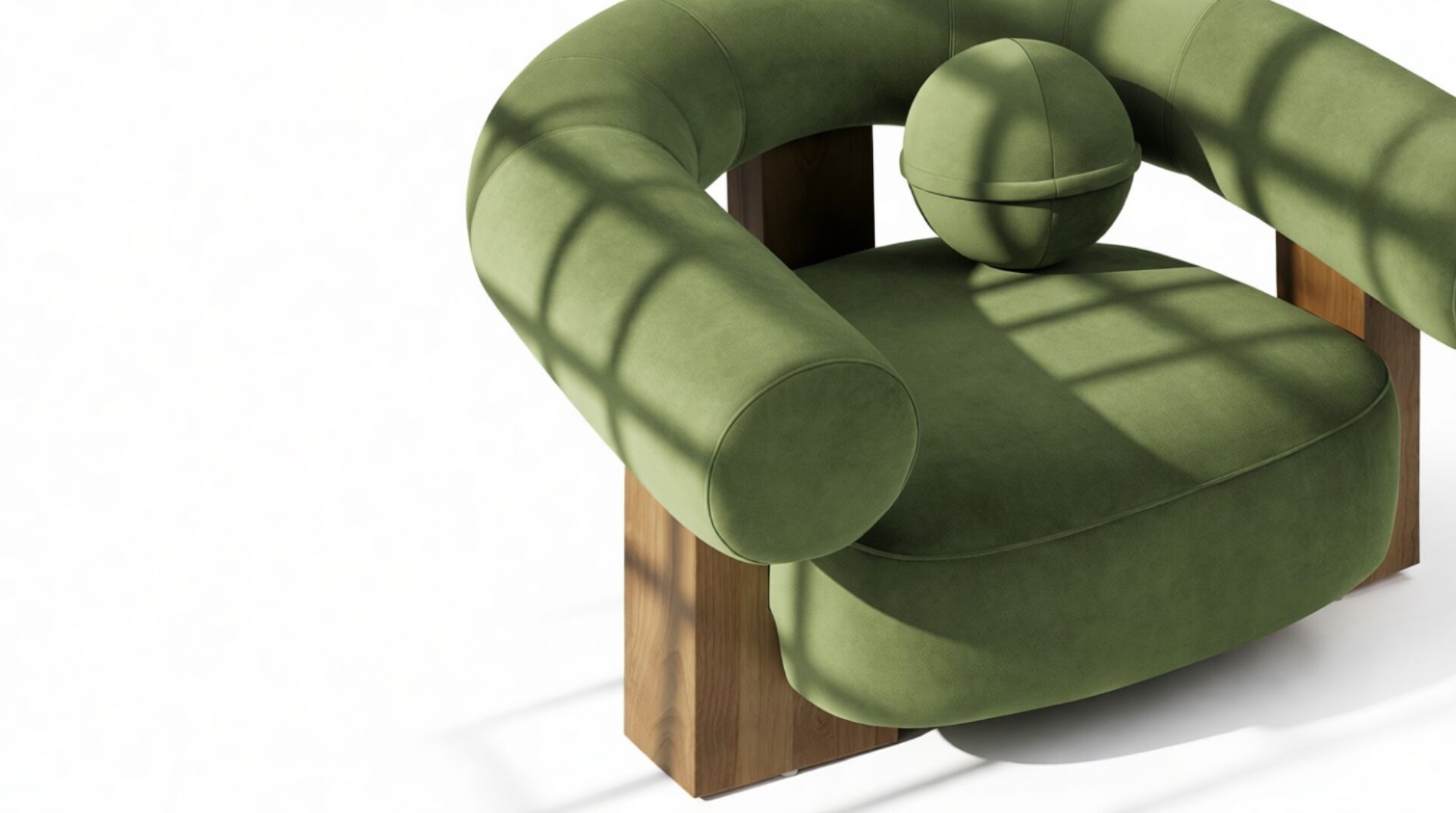 Introducing the captivating Vita Lounge Chair, an artistic statement piece that boldly marries strength and style. Featuring wide, curved arms and a charming ball-shaped cushion, this chair's striking silhouette is enhanced by lush Lichen Plush Velvet upholstery. Crafted with robust walnut pieces, it offers luxurious comfort and a refined focal point in any living space. Elevate your decor with the distinctive aesthetic of the Vita Lounge Chair.