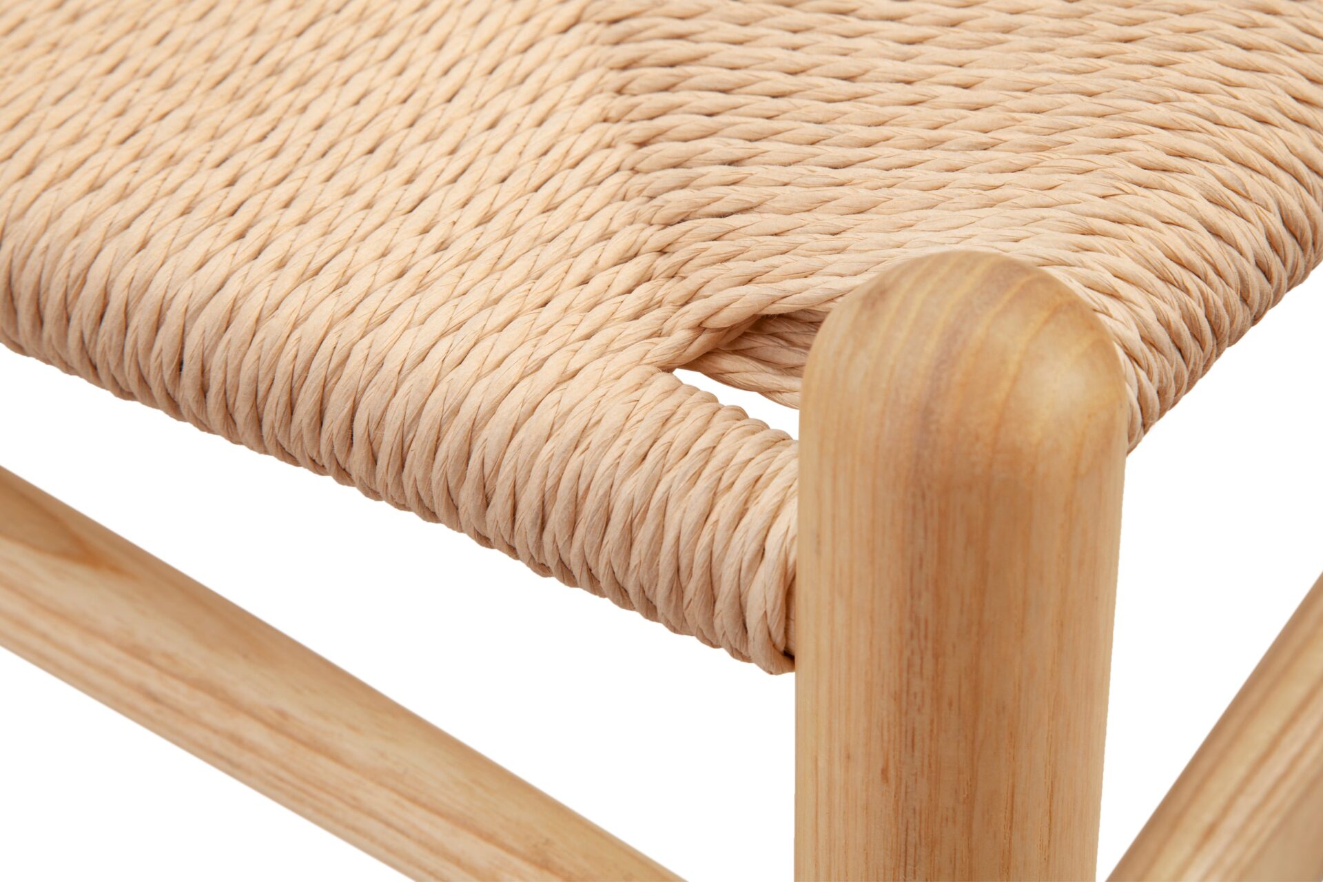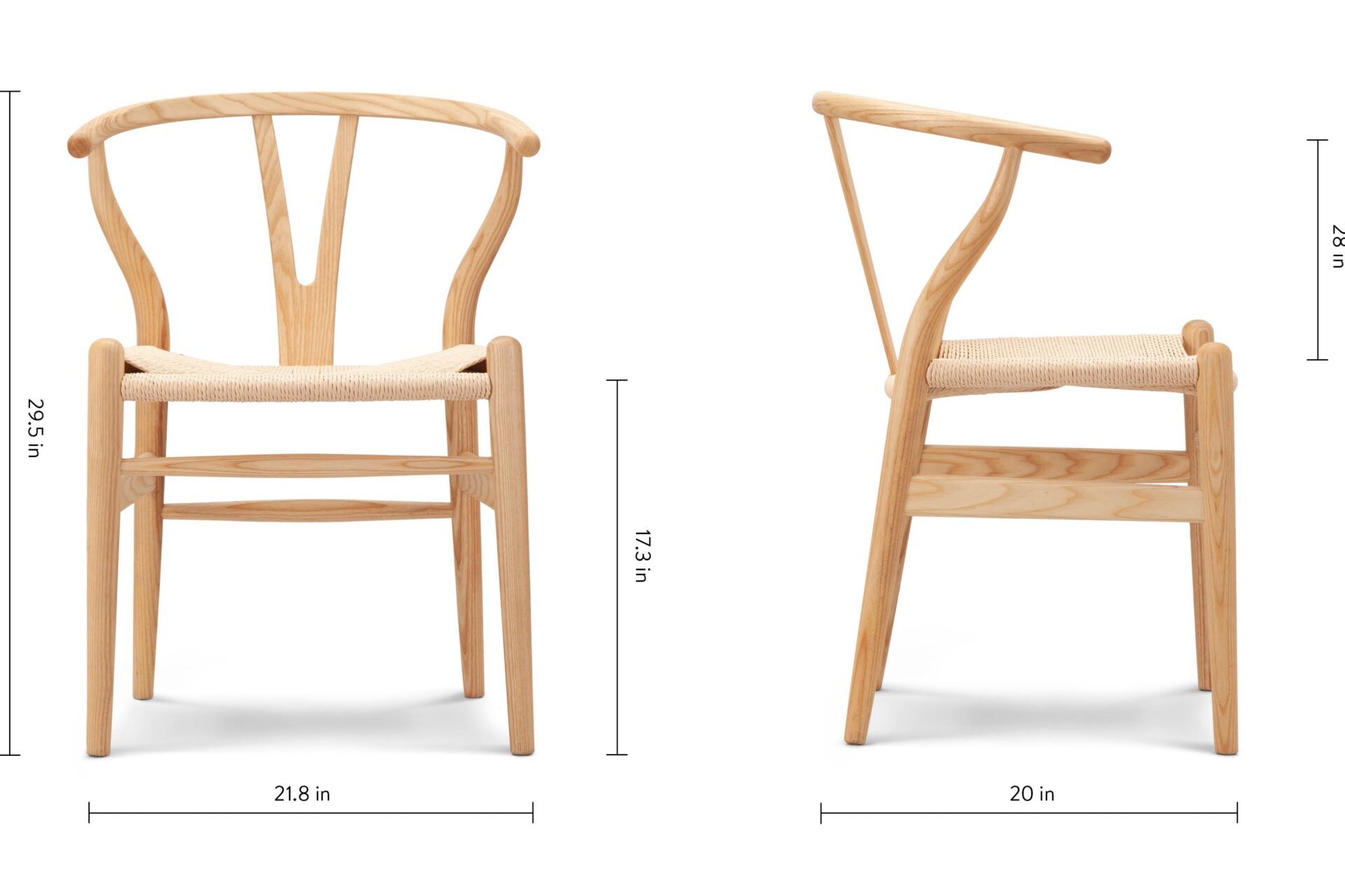 The Wish Chair, inspired by world-renowned Wishbone chair, exemplifies the iconic mid-century Danish design known for its unique back-rest support shape. This chair's design represents a superb example of elegant simplicity. Featuring curved back legs that gradually taper to connect with the back rail, its silhouette continues to captivate enthusiasts of the design. The Wish Chair is a minimalist's dream, boasting a lightweight yet sturdy and sophisticated frame paired with a comfortable paper-cord seat.