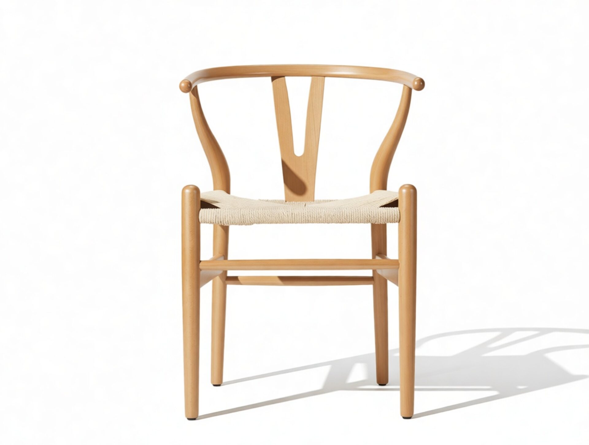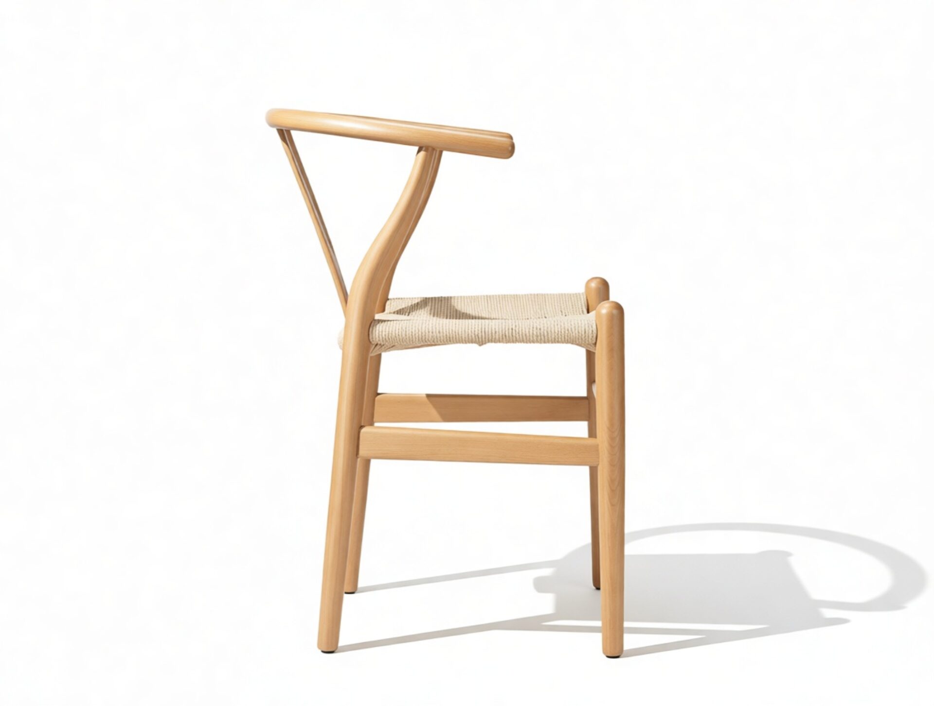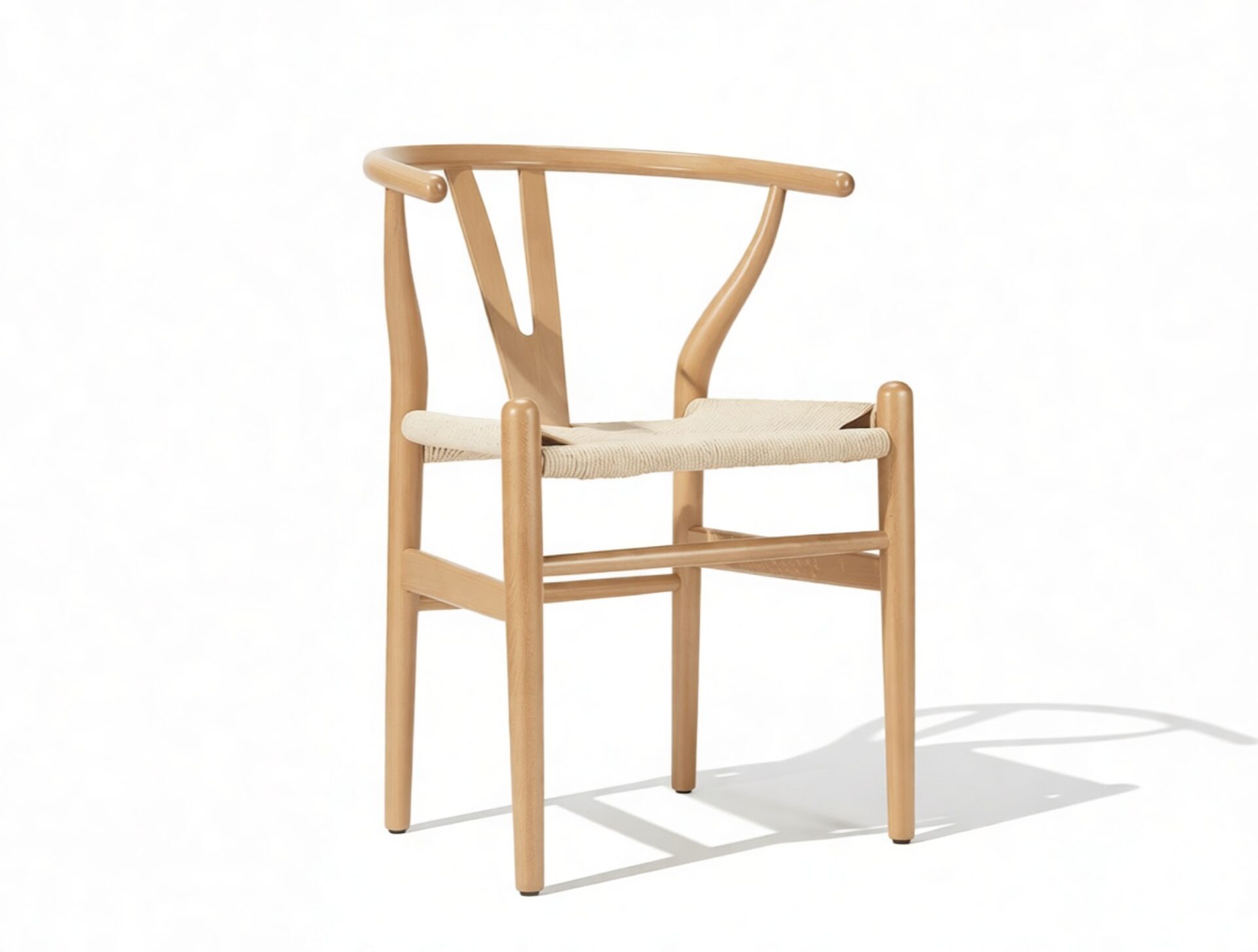 The Wish Chair, a celebrated icon of Danish design, now shines in Beech. Its graceful silhouette and distinctive backrest shape embody minimalist refinement, while the handwoven paper-cord seat brings artisanal warmth, making it a versatile fit for modern homes and stylish workspaces.