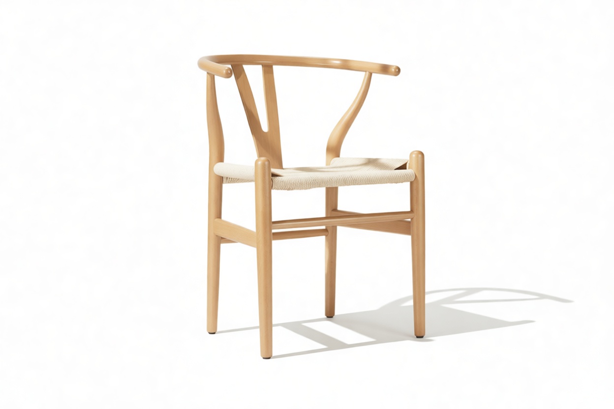 The Wish Chair, a celebrated icon of Danish design, now shines in Beech. Its graceful silhouette and distinctive backrest shape embody minimalist refinement, while the handwoven paper-cord seat brings artisanal warmth, making it a versatile fit for modern homes and stylish workspaces.