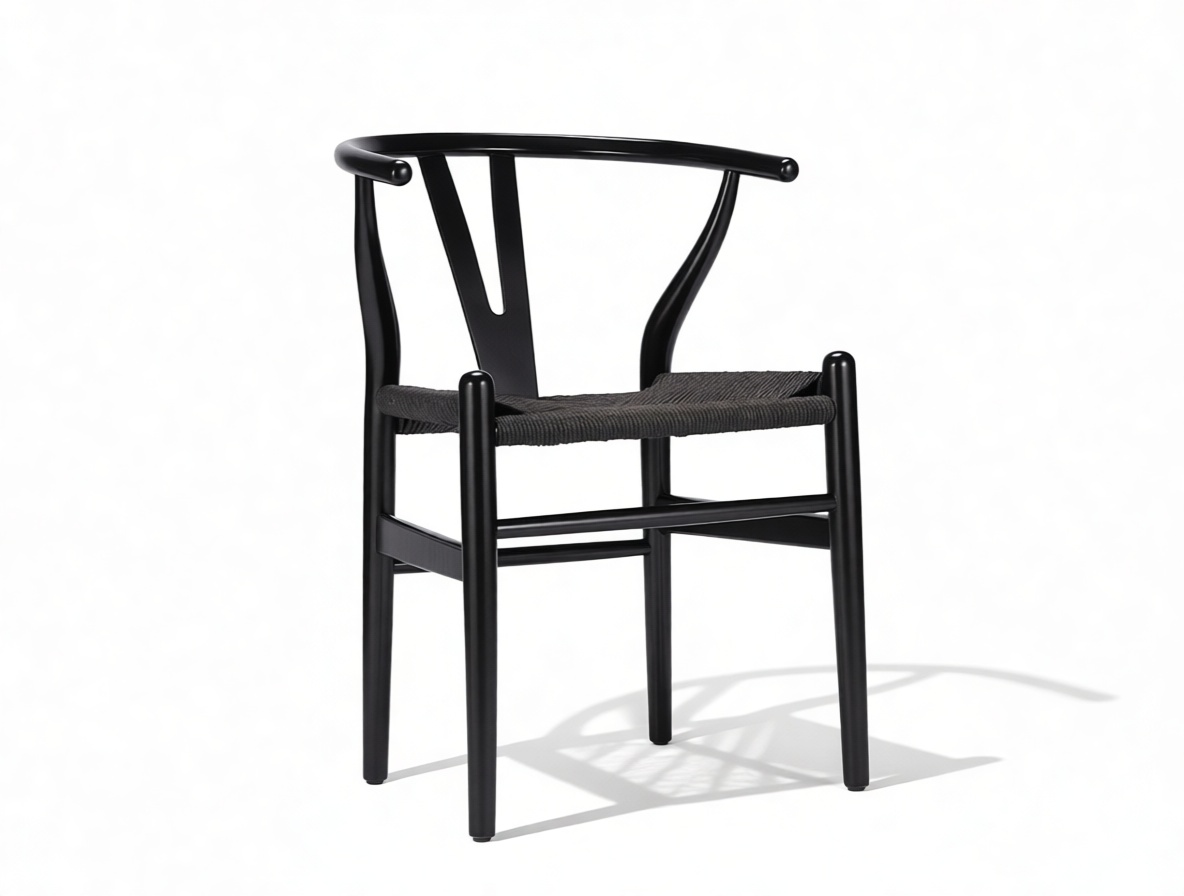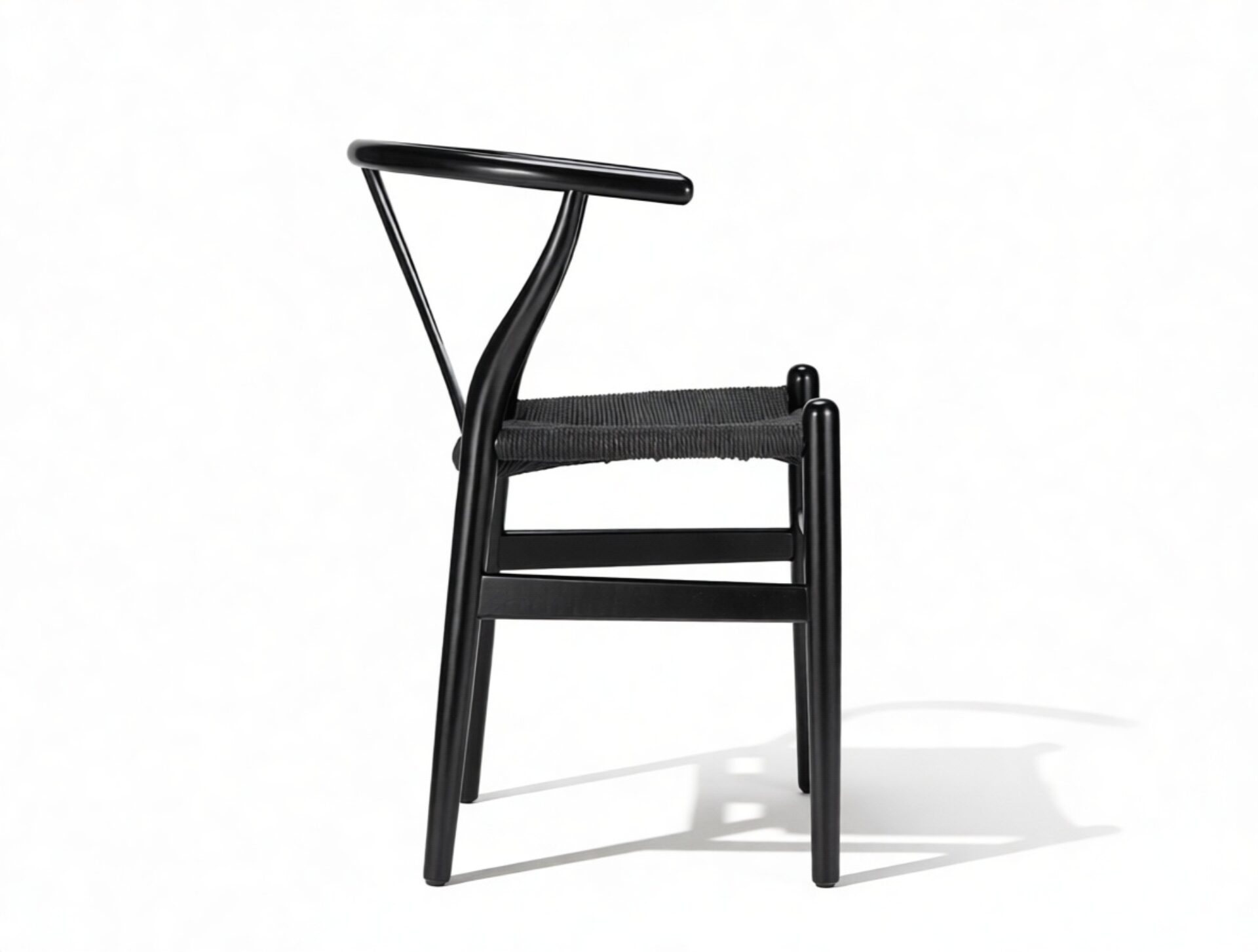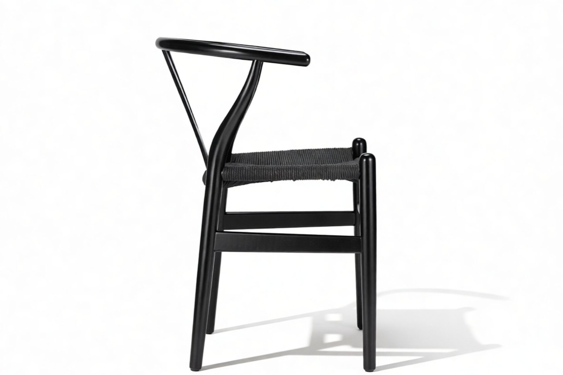 Elevate your space with the iconic Wish Chair, showcasing mid-century Danish design at its finest. Boasting a sleek silhouette with curved back legs and a paper cord seat, this minimalist masterpiece in Black with Black Seat offers a blend of elegance and comfort. Expertly handcrafted, this sophisticated seating option effortlessly complements any style, making it a versatile choice for both residential and commercial spaces.