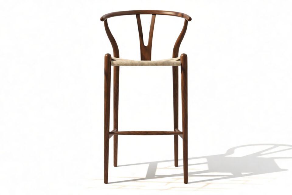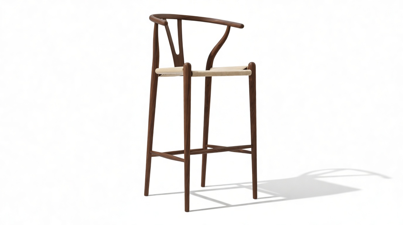 Elevate your space with the timeless Wish Bar Stool, inspired by mid-century Danish design. This iconic piece boasts a distinct back-rest support, lightweight yet sturdy frame, and a comfortable paper-cord seat. The Light Walnut variation adds a touch of sophistication and charm, making it a versatile and stylish addition to any residential or commercial setting.