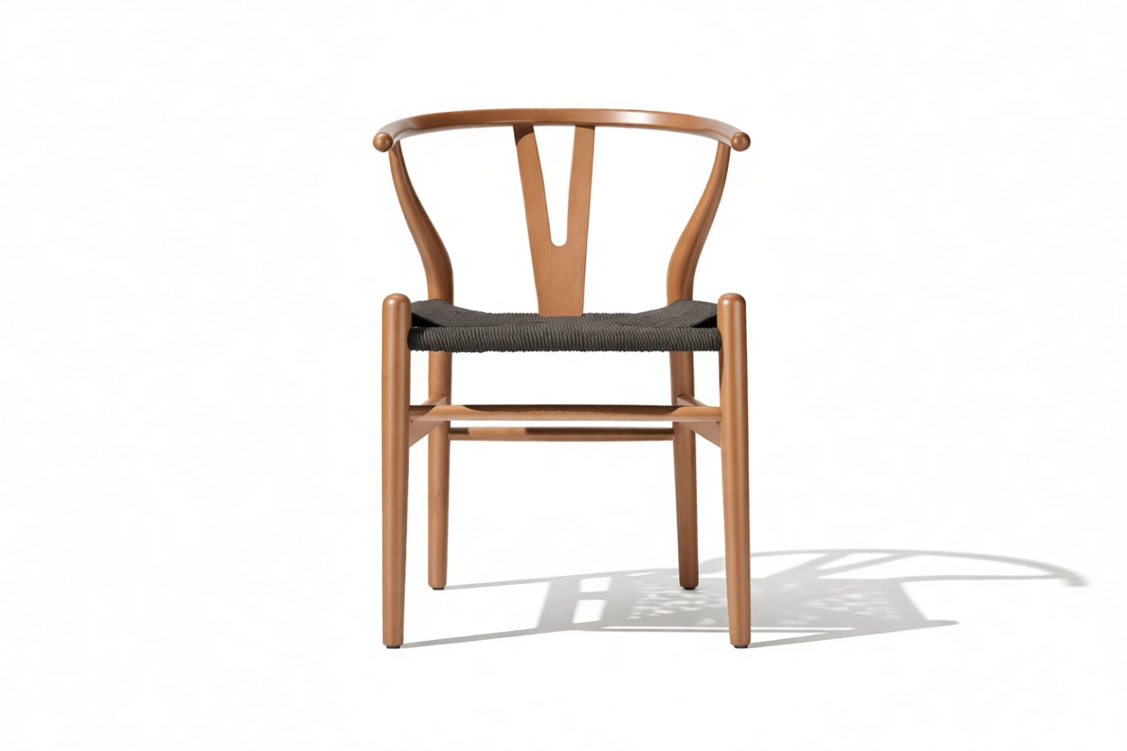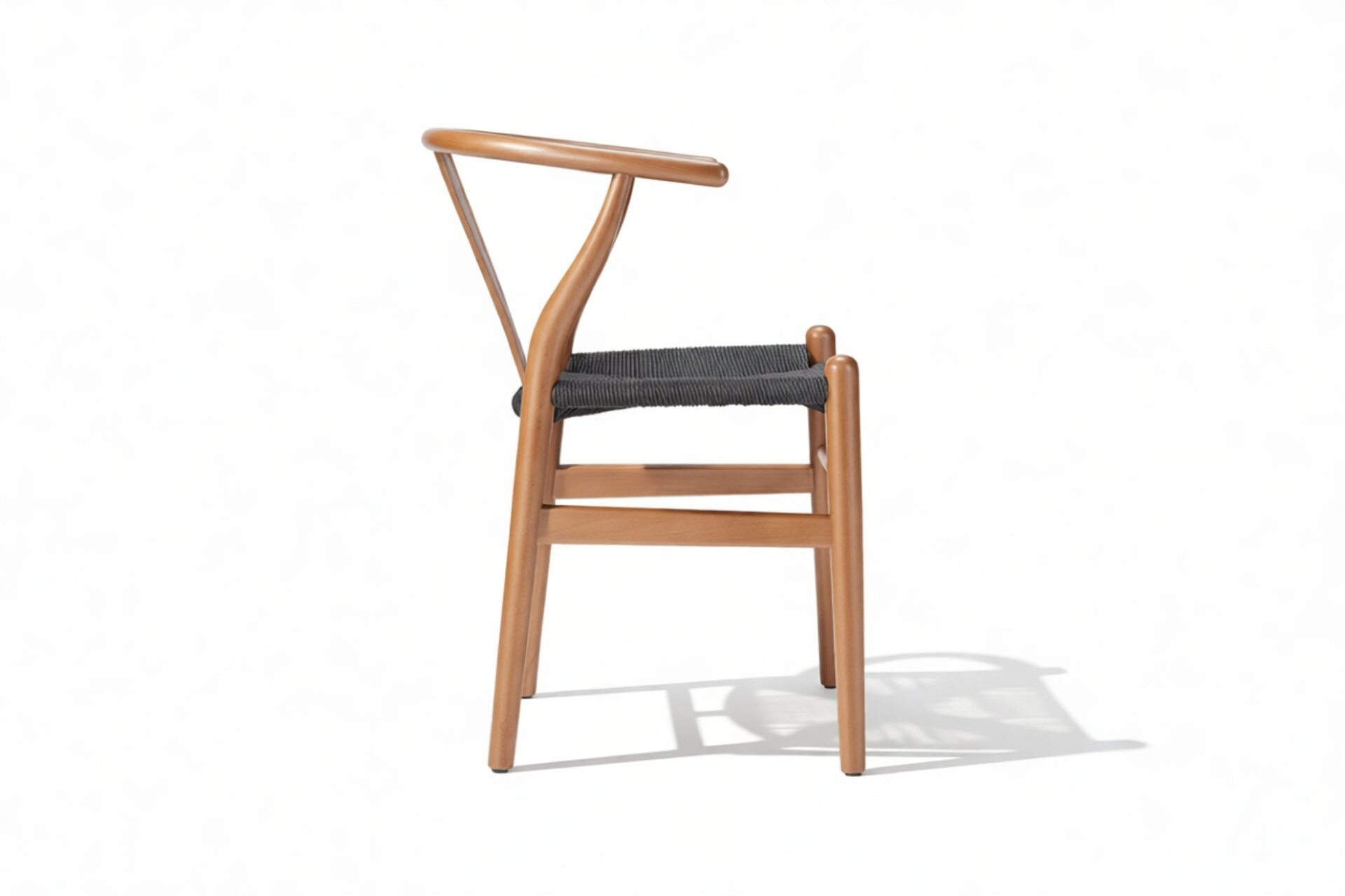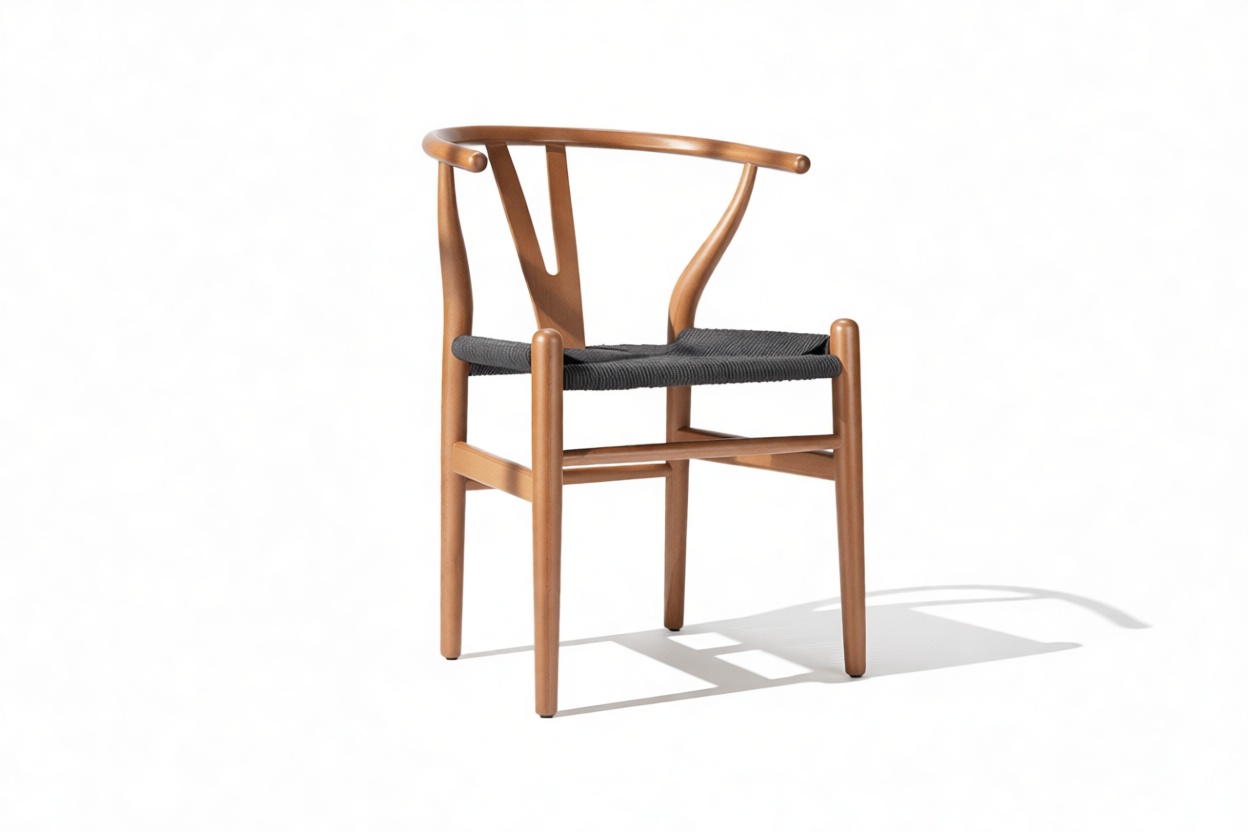 The Wish Chair, inspired by world-renowned Wishbone chair, exemplifies the iconic mid-century Danish design known for its unique back-rest support shape. This chair's design represents a superb example of elegant simplicity. Featuring curved back legs that gradually taper to connect with the back rail, its silhouette continues to captivate enthusiasts of the design. The Wish Chair is a minimalist's dream, boasting a lightweight yet sturdy and sophisticated frame paired with a comfortable paper-cord seat.