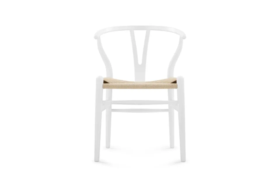 Introducing the Wish Chair - an iconic piece with a Danish mid-century design featuring unique backrest support. Its elegant simplicity is accentuated by curved back legs tapering to a stylish back rail. This minimalist dream in White combines a lightweight yet sturdy frame with a comfy paper-cord seat. Experience its timeless appeal in residential or commercial spaces, as it effortlessly adds charm and sophistication to any setting.
