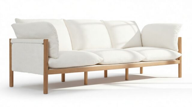 Valley Sofa, Eggshell Boucle and Oak