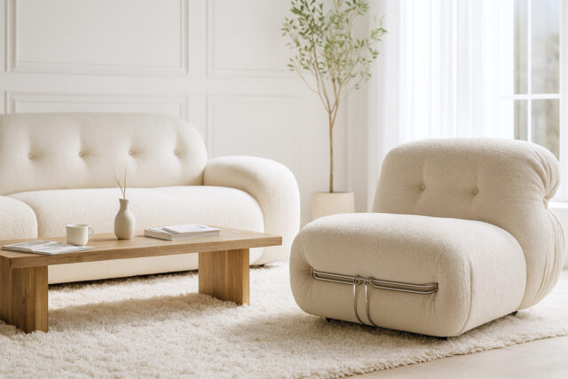 Soriana Deep Lounge Chair, White Boucle