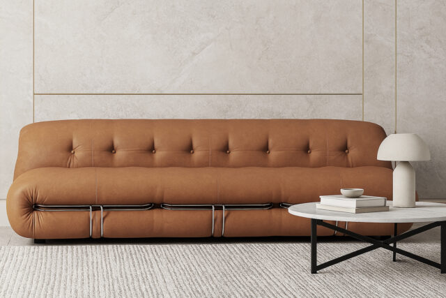 Soriana Three Seater Sofa, Chestnut Vegan Leather