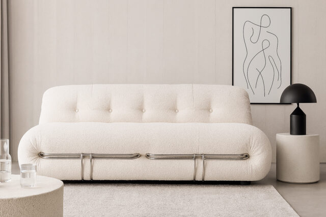 Soriana Three Seater Sofa, White Boucle