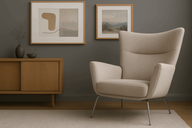 Wegner Wing Ottoman, Wheat Gray Cashmere Wool