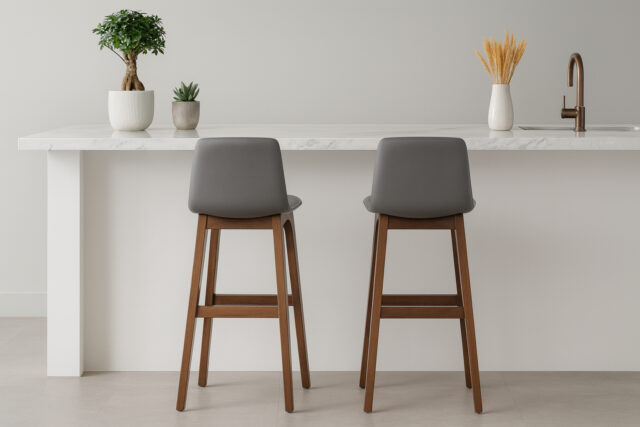 LeBlanc Bar Stool, Glacier Gray Vegan Leather and Walnut