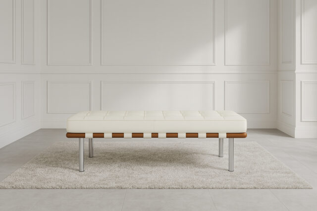Manhattan Two Seater Bench, Ivory Premium Leather