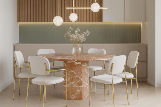 Saga Round Pedestal Dining Table, Rojo Alicante, 47in